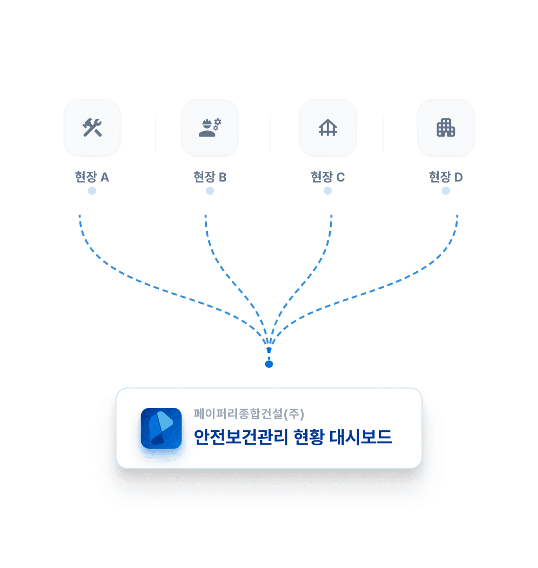 각 현장에서 입력되는 안전 점검 데이터가 지연 없이 본사 대시보드로 자동 전송됩니다.